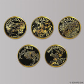 A collection of embossed badges featuring formidable foes from FINAL FANTASY XIV!
