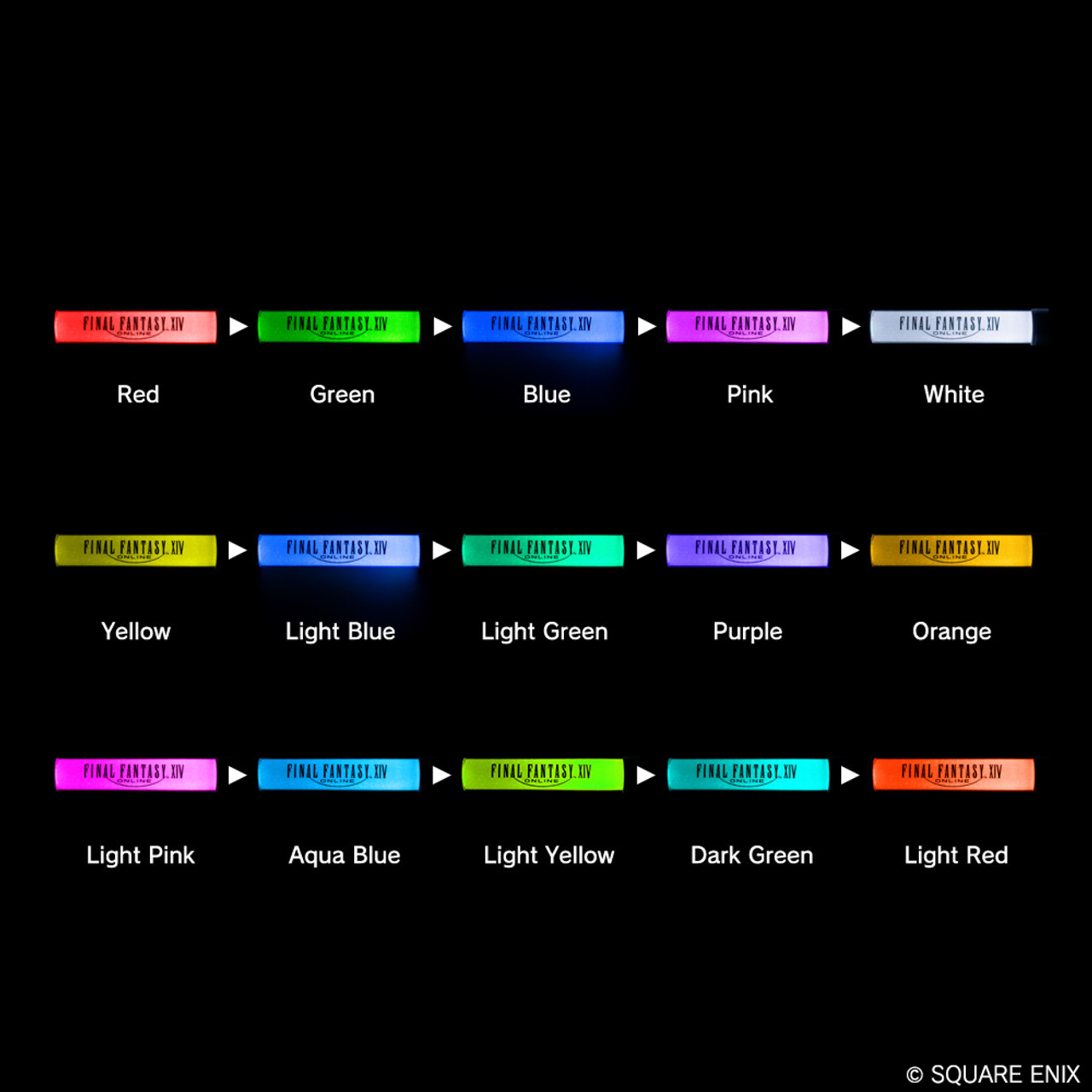 Introducing a FINAL FANTASY XIV-branded LED light stick that features 15 different colors for you to cycle through. Express yourself with your color of choice, whenever and wherever you want!