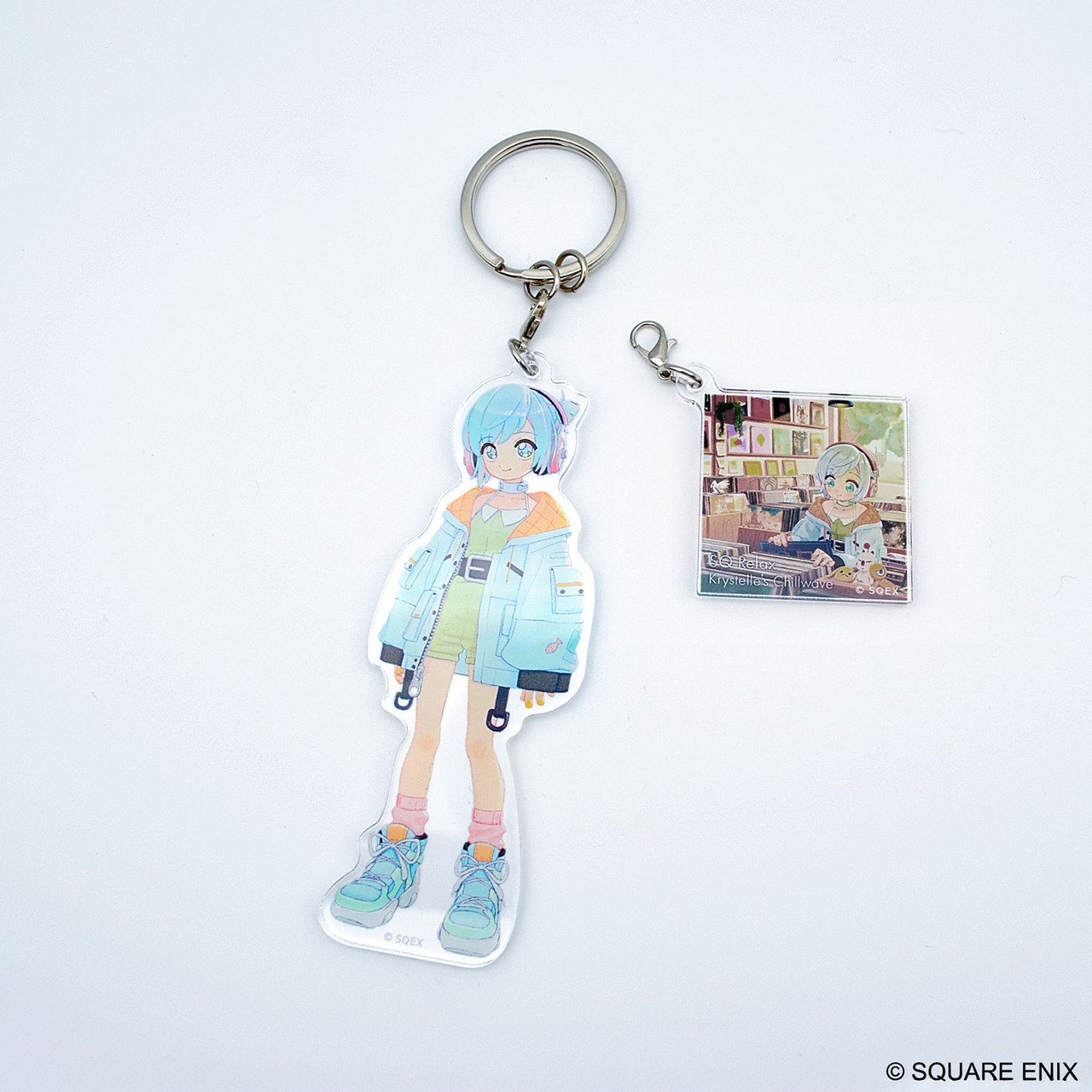 After revisiting some of SQUARE ENIX's most iconic tracks with the all-new chilled out remix album "SQ Relax - Krystelle's Chillwave," we're thrilled to share an expansion to the worldview with Chill SQUARE ENIX MUSIC 24/7 mascot character Krystelle's debut goods in the form of this acrylic keychain!